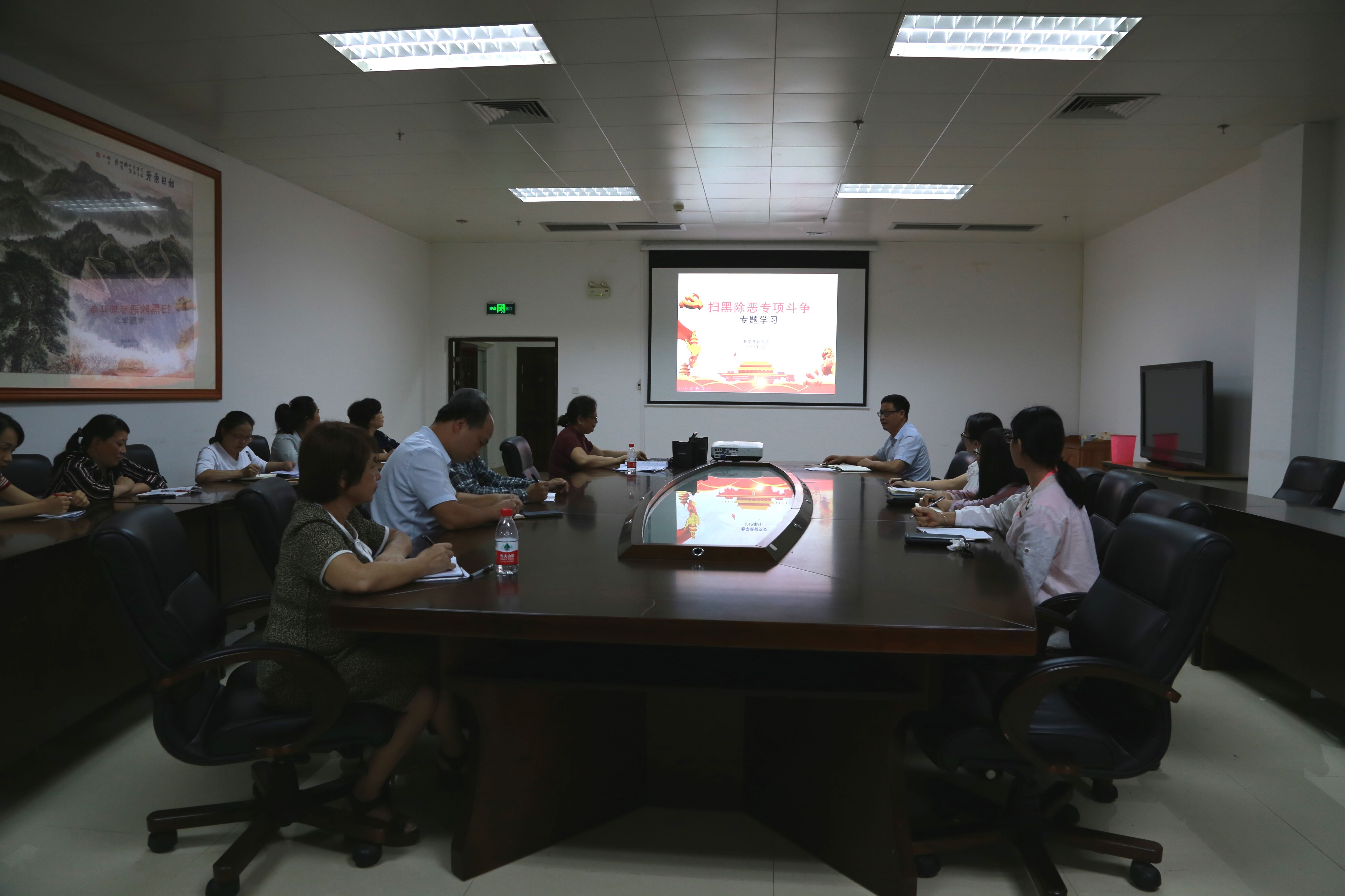 全体党员在认真学习“扫黑除恶专项斗争”精神