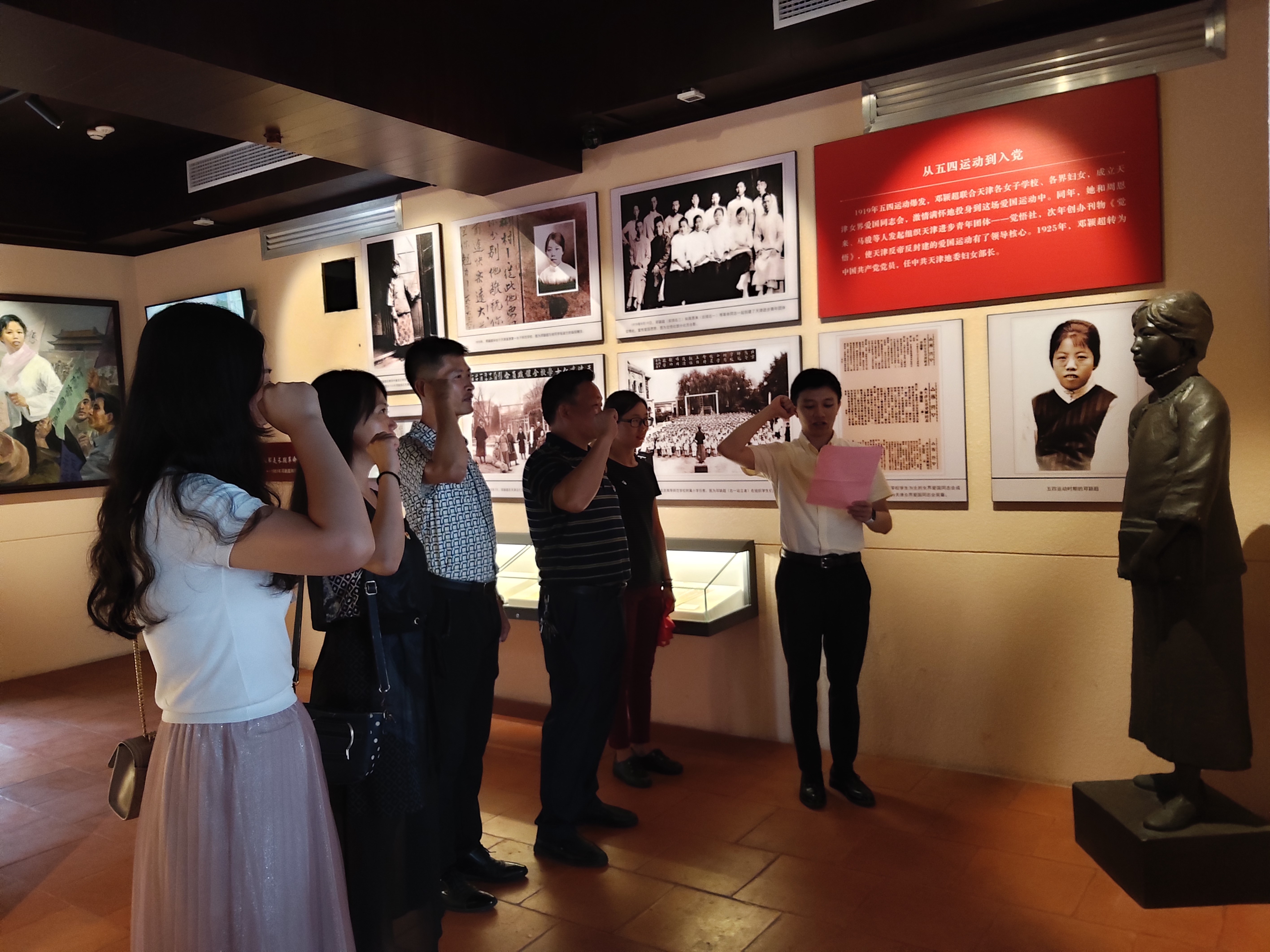 在纪念馆里,支部成员参观了“序厅”“南宁女儿”“求学任教”“革命征程”“浓浓乡情”“建设祖国”“革命伴侣”“西花厅岁月”“走进永远”等展厅,回顾了邓颖超这位无产阶级革命家光辉的一生,也深深感受到她作为一名革命党人艰苦朴素、爱国奉献的精神。参观后,支部成员开展了主题为“不忘初心、牢记使命”的专题讨论,并在邓颖超入党塑像前重温了入党誓词。