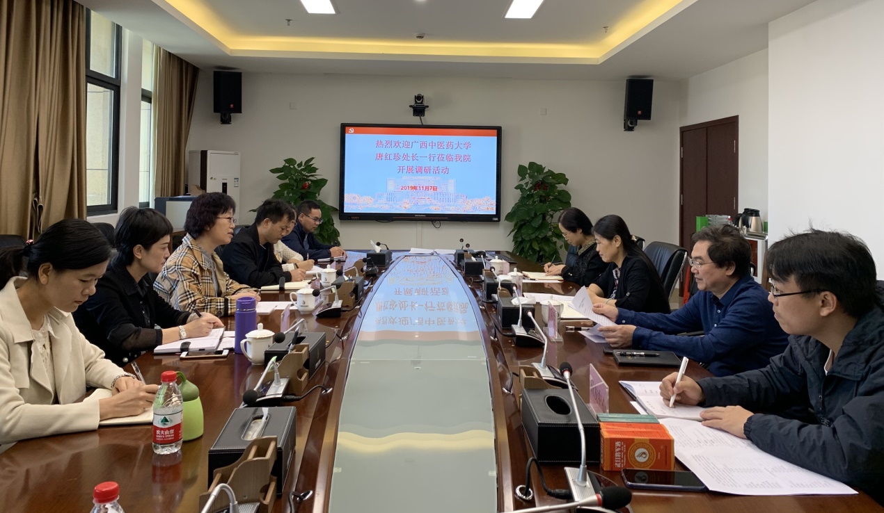 学校科技处党支部、成社处党支部一行8人,于11月6日、7日下午分别前往星空彩票老版本下载附属瑞康医院、广西国际壮医医院开展“不忘初心、牢记使命”主题教育调研。