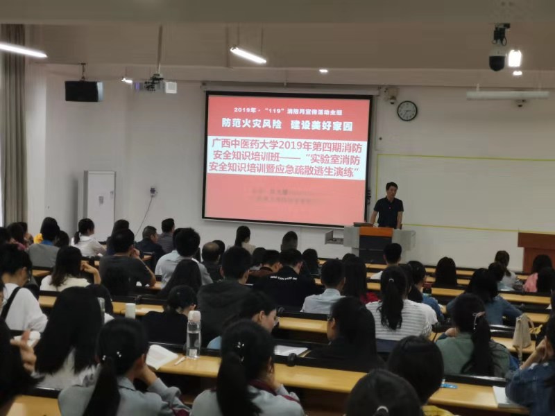培训班上,武保部邀请广西致力消防技术服务中心宣传教育培训部主任陈光耀作了消防安全知识讲座,陈老师结合学校实验室消防安全管理工作现状以及师生员工平时工作、学习、生活中的一些陋习,通过大量区内外、近远期的消防火灾案例,深入浅出的为参训人员上了一堂生动的消防安全知识课。结束后,参训人员进行灭火器实际操作并进行实验室应急疏散逃生演练。