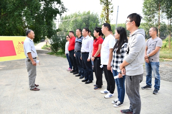 六味村村支书向党员们介绍革命烈士的英勇事迹和解放战争革命老区的光荣历史
