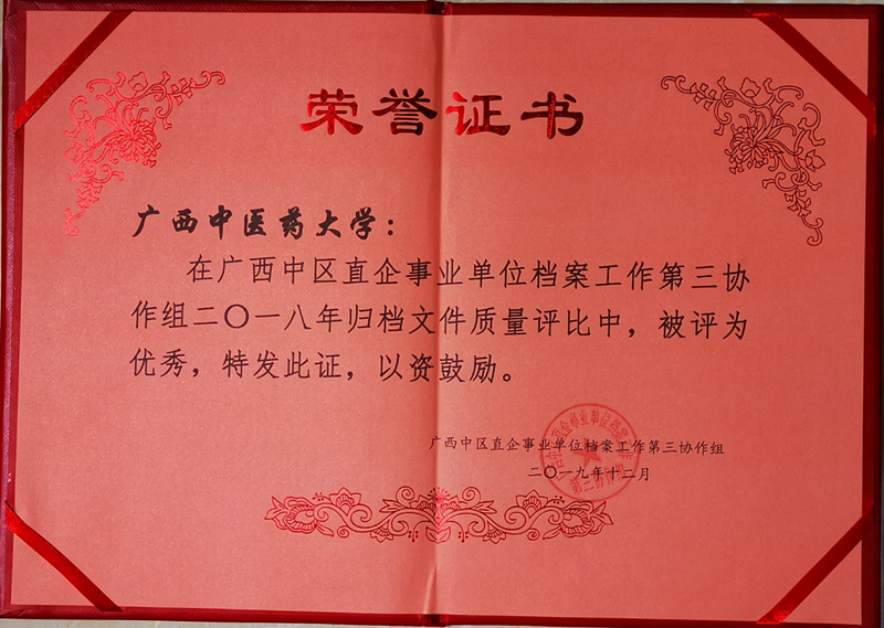 2019年12月12-13日,广西中区直企事业单位档案工作第三协作组2019年年会在钦州北部湾大学召开,全区共26所高校57位代表参会。会上表彰了2018年度自治区中区直企事业单位档案归档文件质量评比中获奖的高校,我校荣获“优秀”称号。