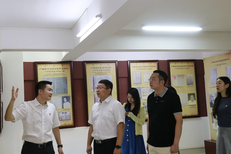 会后,孙佳明一行参观晨钟暮鼓楼、阿平湖、大学生活动中心、附属国际壮医医院。