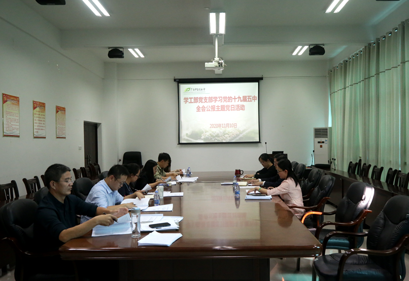 11月10日下午,学工部党支部在仙葫校区召开党员大会暨学习十九届五中全会精神主题党日活动,支部书记叶勇玲主持会议。