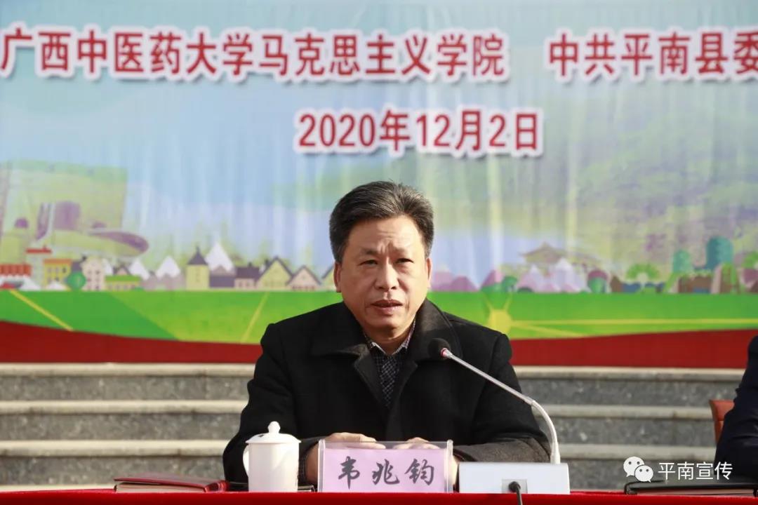 韦兆钧在仪式上讲话时指出,本次“乡村振兴教授博士工作站”的挂牌,是我院服务社会和科学研究方向转型的历史机遇,我院将以本次挂牌为契机,加快科研创新、人才团队、社会服务等方面的建设,紧密结合平南县经济社会发展实际,积极承担、参与有关重大理论和现实问题研究。同时,将在理论宣讲、人才培养培训、挖掘整理平南县红色文化资源、点校平南县志和府志、调研平南县社会经济发展等方面展开工作,以平南县村级集体经济的理论与实践研究为突破口,为平南县经济社会发展提供智力支撑和决策咨询。