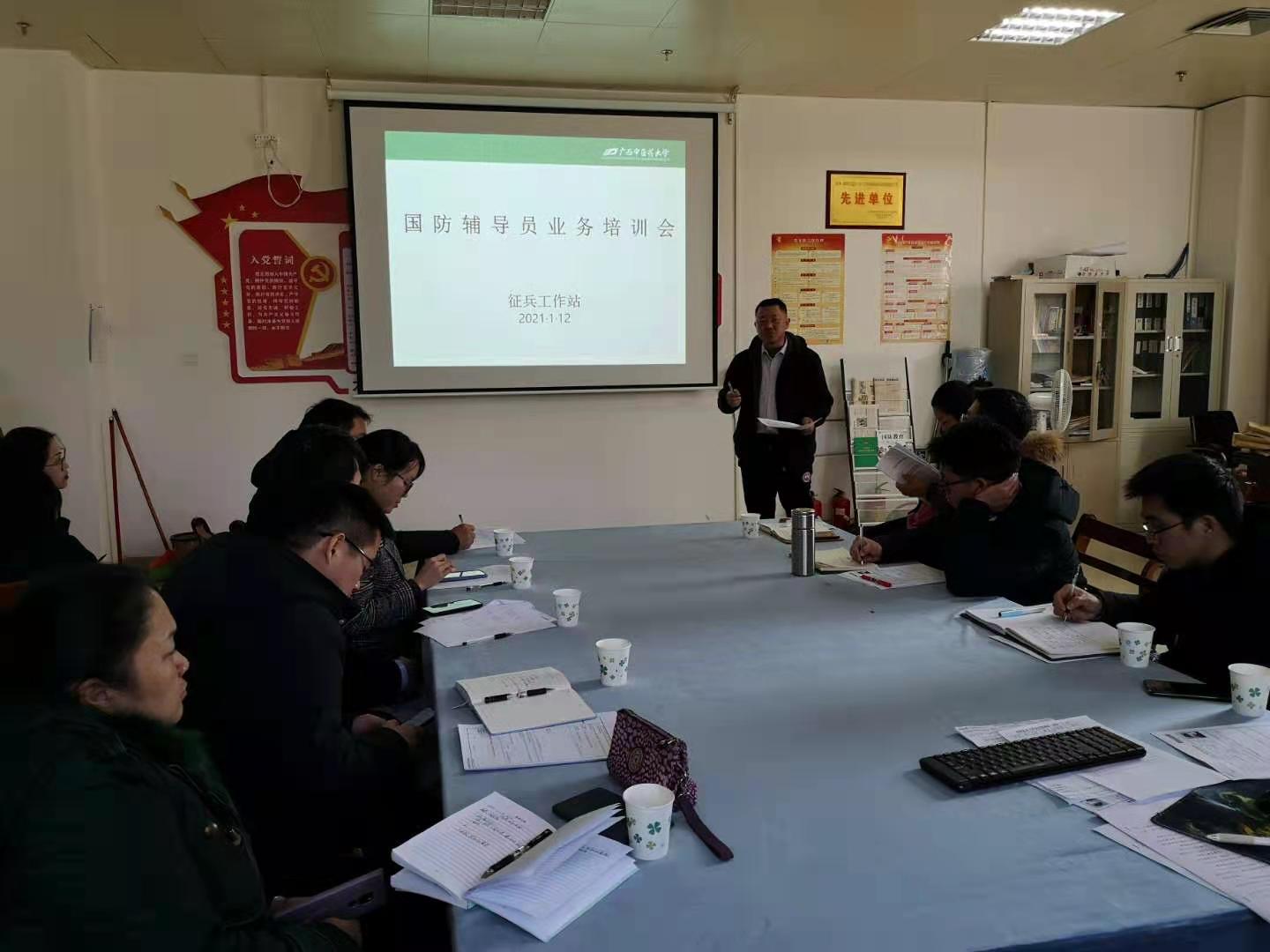 为做好学校2021年度征兵工作,锻造一支“政治强、业务精、作风正、纪律严、工作实、服务优”的国防辅导员队伍,进一步提升我校兵员征集工作的水平。1月12日下午,武装部举办征兵工作业务培训会,各学院及附属单位的国防辅导员参加此次会议。