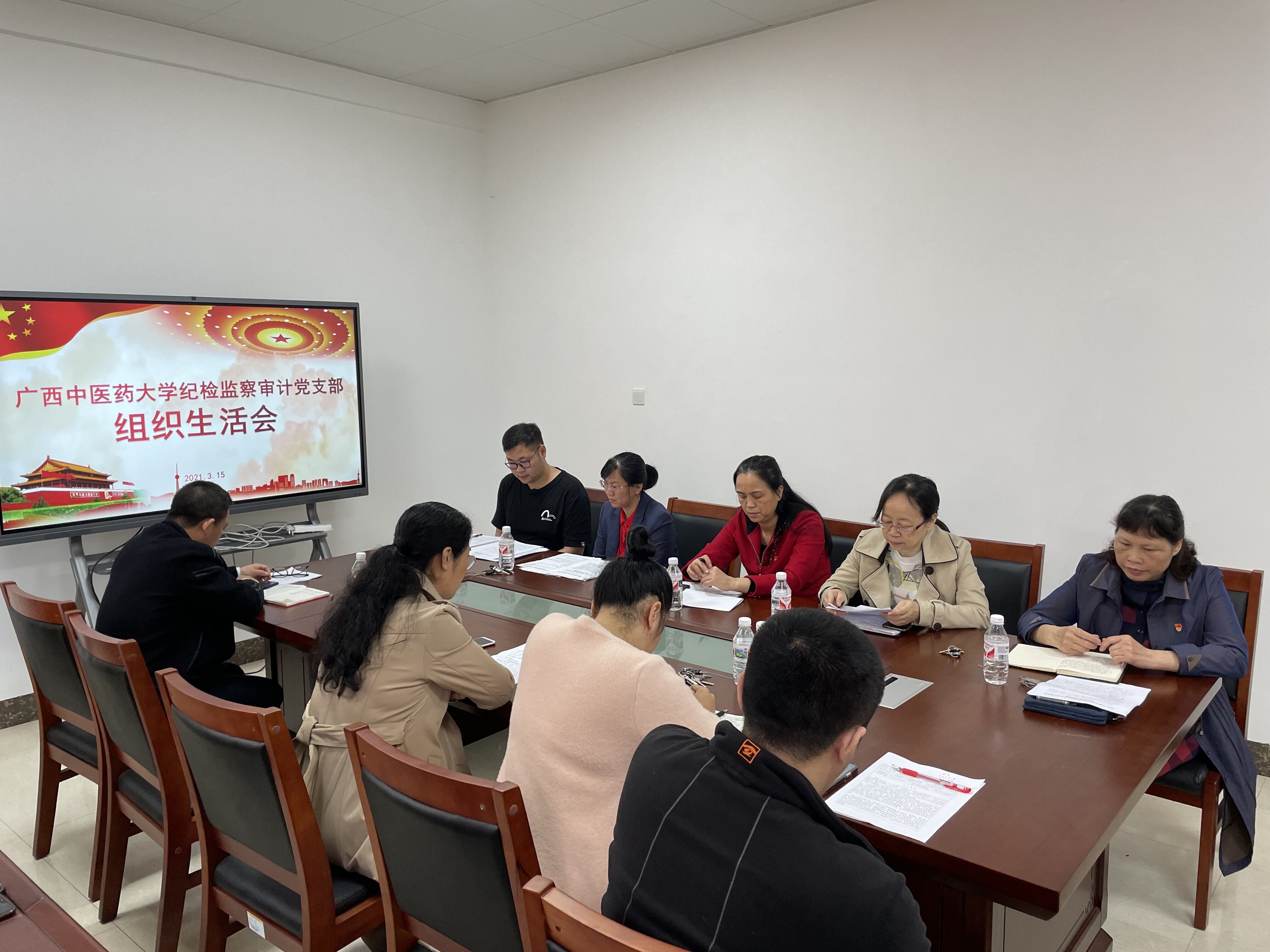 3月15日上午,纪检监察审计党支部在合德楼233室召开组织生活会和民主评议党员。会议由党支部书记苏露梅主持。学校纪委书记韦雪芳以普通党员身份参加会议。