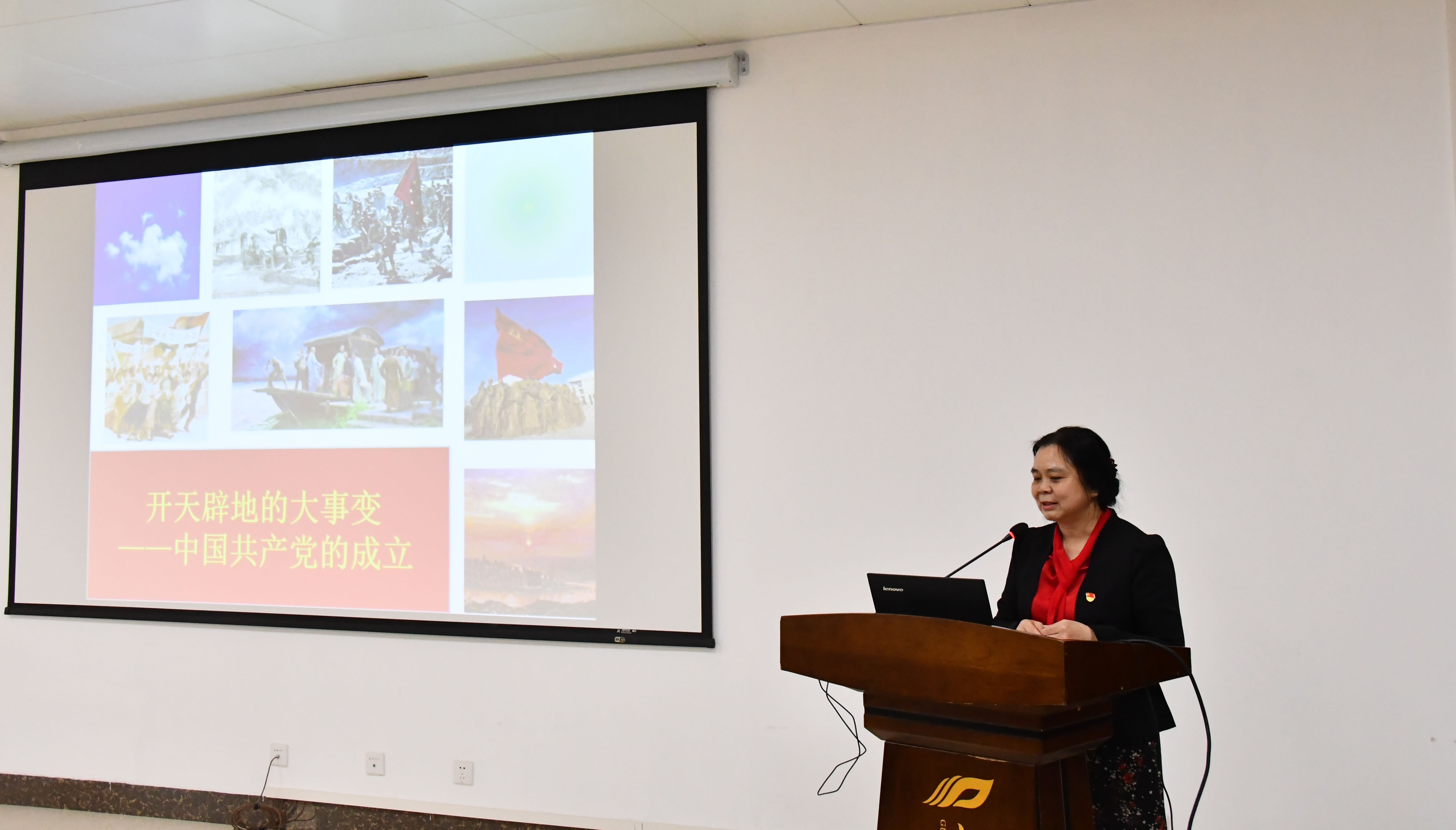会上,还邀请马克思主义学院李玫姬教授给大家作了题为《开天辟地的大事变——中国共产党的成立》的专题辅导报告。
