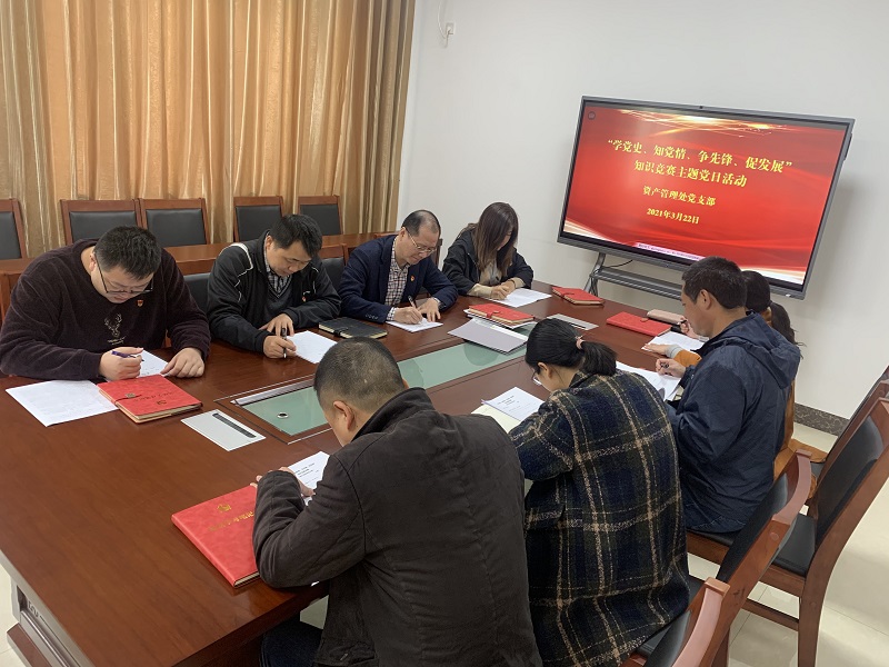 3月22日上午,资产管理处党支部开展了主题为“学党史、知党情、争先锋、促发展”知识竞赛党日活动,党支部全体党员参加。