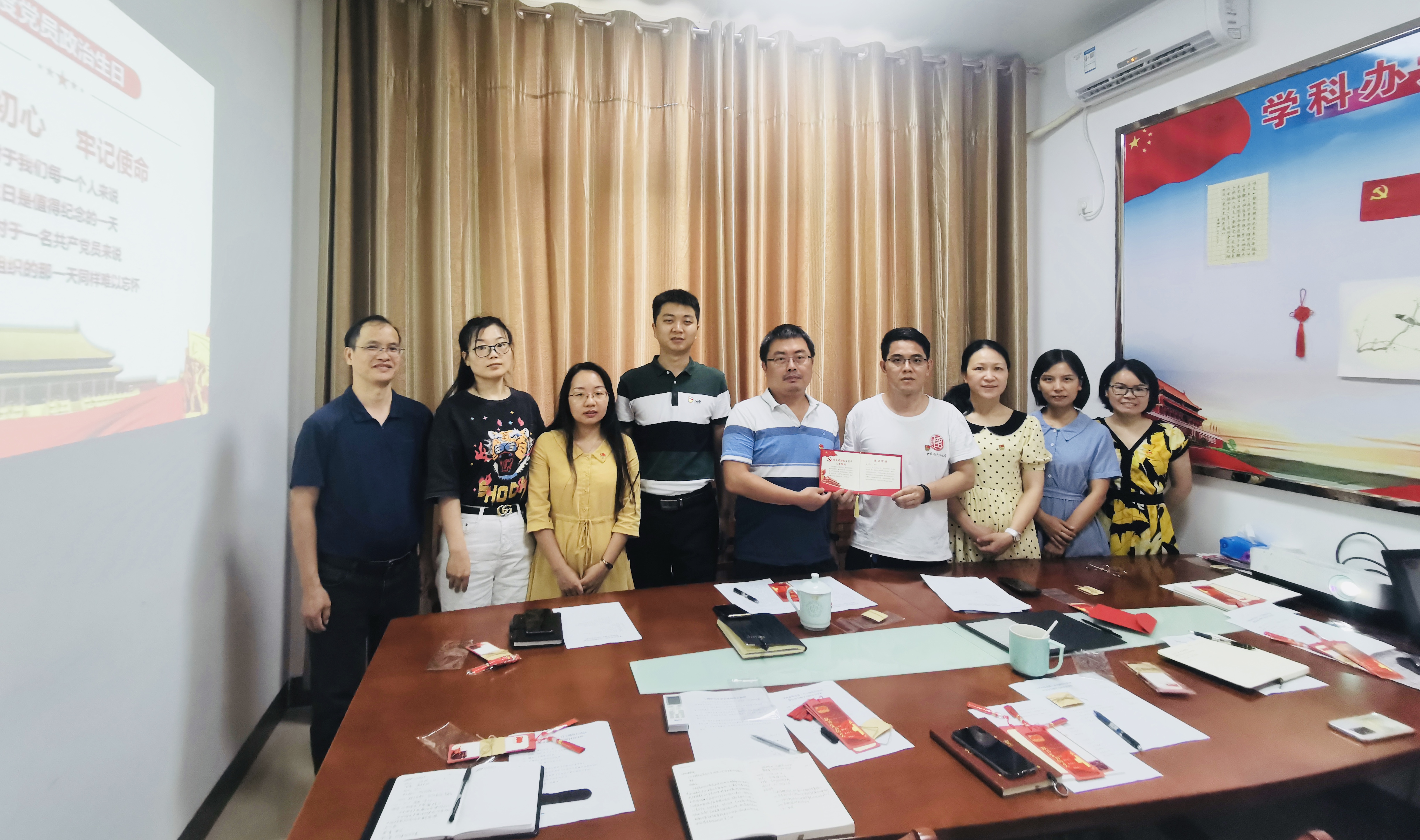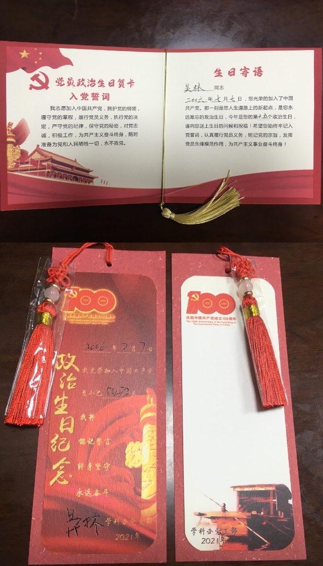 此次主题党日活动中,学科办党支部为7月份入党的党员送上一张印着入党誓词的“生日”卡、一份书签“生日”礼。过“生日”党员发表感言。最后,全体同志以“学法明纪,奋斗不息”为主旨进行集体学习。通过这一重要活动,引导党员进一步强化身份意识和责任意识,提醒党员严格自律和履职尽责,切实发挥先锋模范作用,从而增强党支部的创造力、凝聚力、战斗力。