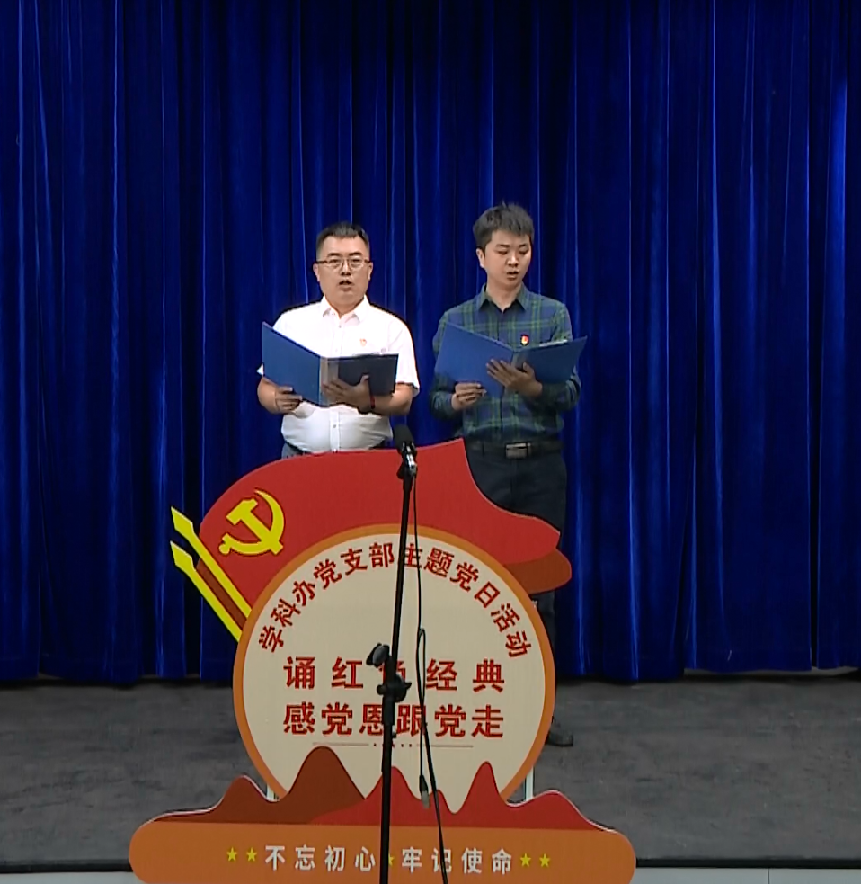 学科办党支部通过集体诵读红色经典诗词《春风拂拂地吹来》和《祖国啊,我亲爱的祖国》,抒发了浓厚的爱国情怀。大家表示,进一步坚定理想信念、赓续红色血脉,坚定不移听党话、矢志不渝跟党走,齐心协力为学校建设再作新贡献。