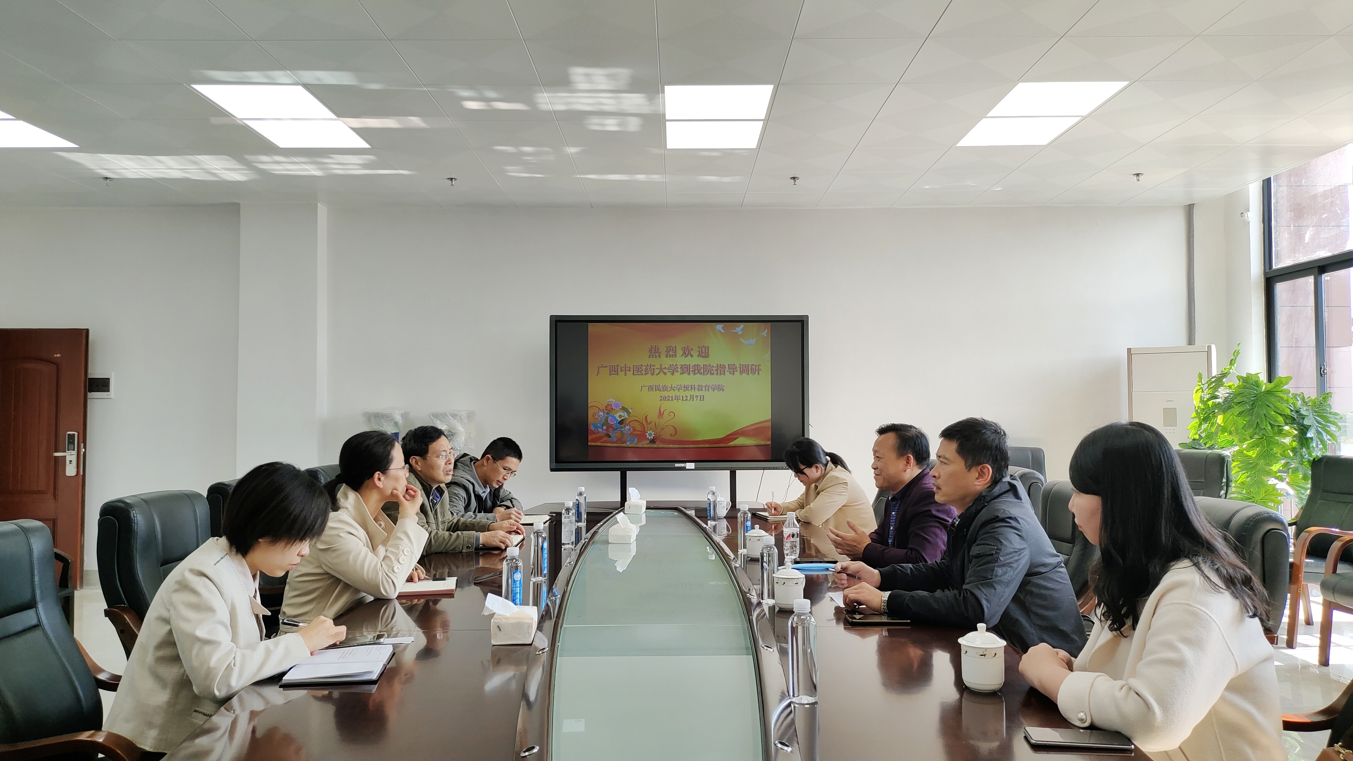 12月7日,学校招生与就业处处长肖华业带领招生与就业处一行到广西民族大学与广西民族大学预科学院领导及相关工作人员座谈交流并举行2021年预科新生见面会。