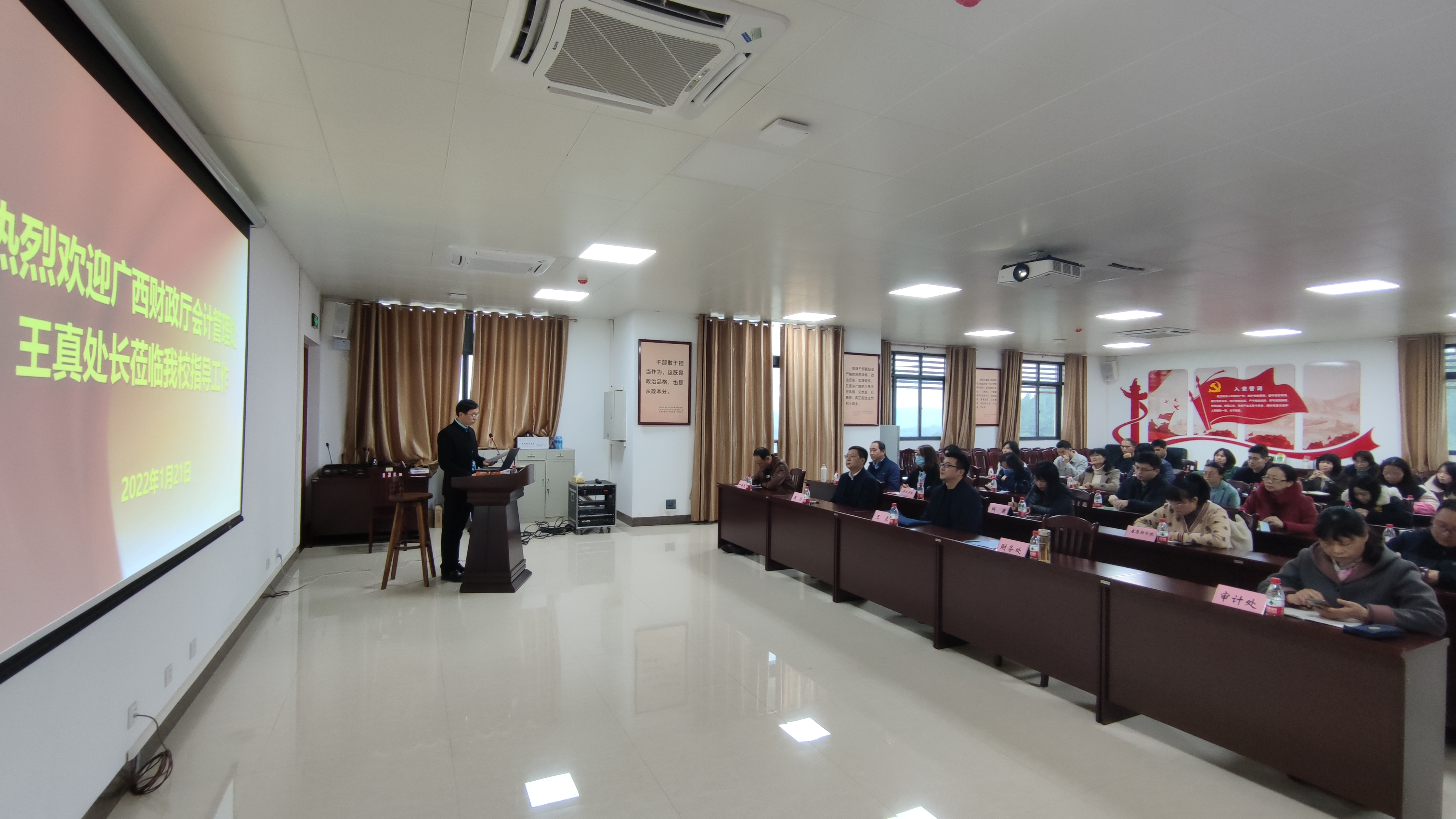 为进一步提高学校财务、审计人员的业务水平和履职能力,1月21日,我校在仙葫校区合德楼401室举办财务业务培训讲座,邀请自治区财政厅会计管理处王真处长专题授课。学校财务处和审计处全体职工、附属单位财务部门负责人及业务骨干、学生代表等40余人参加了培训讲座。培训讲座由学校财务处处长欧阳瑞聪主持。