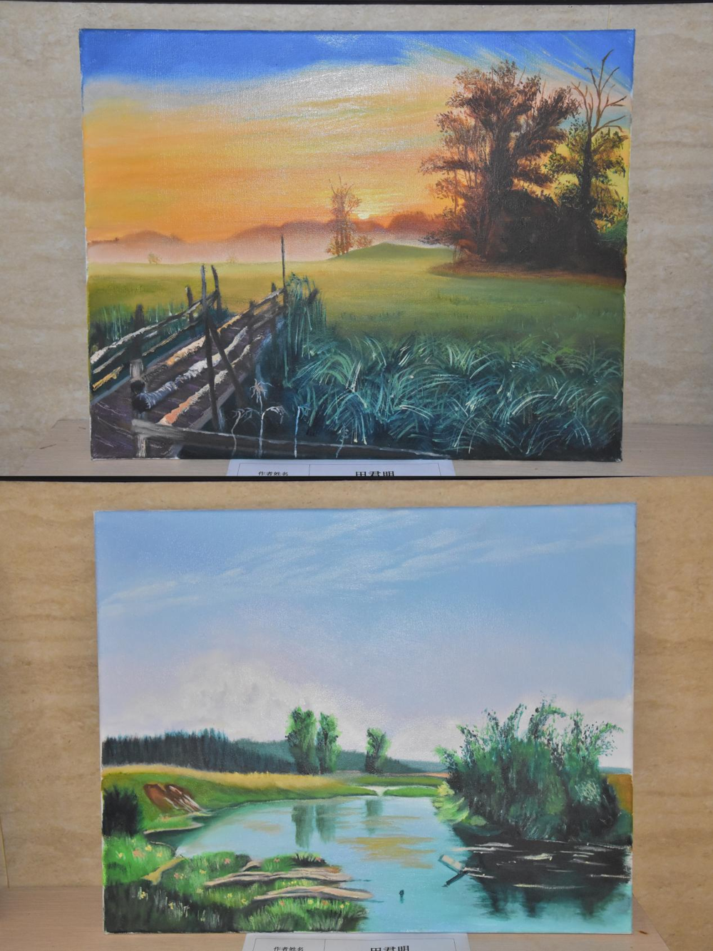 “以画为体,以景筑梦”,骨伤学院党支部田君明的油画作品《晨光》和《流金时光》深入生活,融入自然,领悟时代变迁,追寻红色历程,感悟社会进步,激发了观展者深厚的爱国热情和对美好生活的向往。