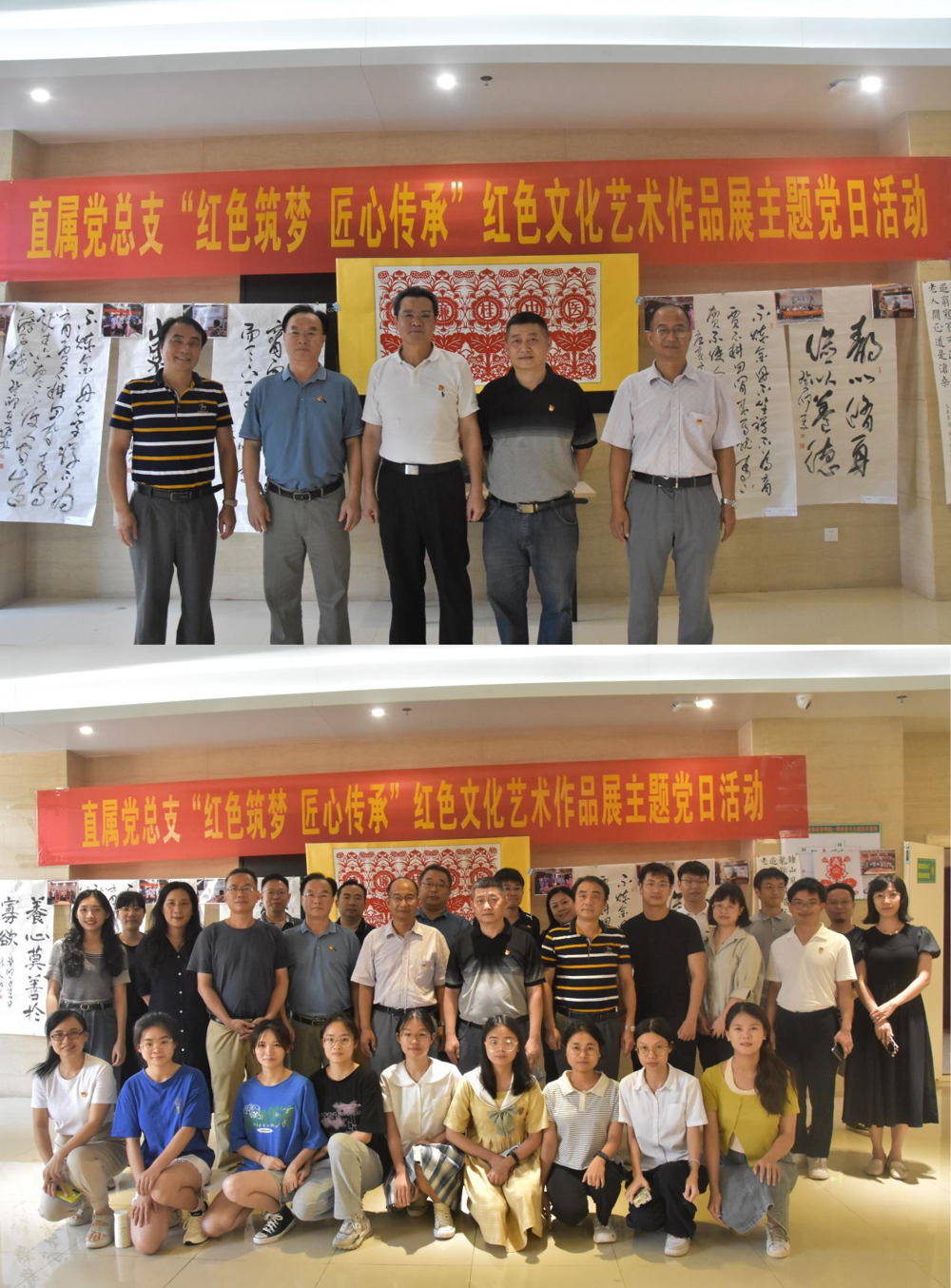 7月4日下午,直属党总支全体党员和所辖各部门干部开展“红色筑梦 匠心传承”主题党日现场学习活动。活动于6月16日开始面向全体师生开展书法、绘画、摄影、手工艺品等各类艺术作品的征集,师生以弘扬红色文化为创作主题,以独到的创意思维体现红色文化之美,活动收集到多幅书画、剪纸、摄影作品。