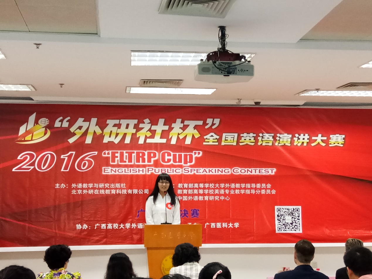 我校学生参加2016年“外研社杯”全国英语演讲比赛(广西赛区决赛)荣获佳绩