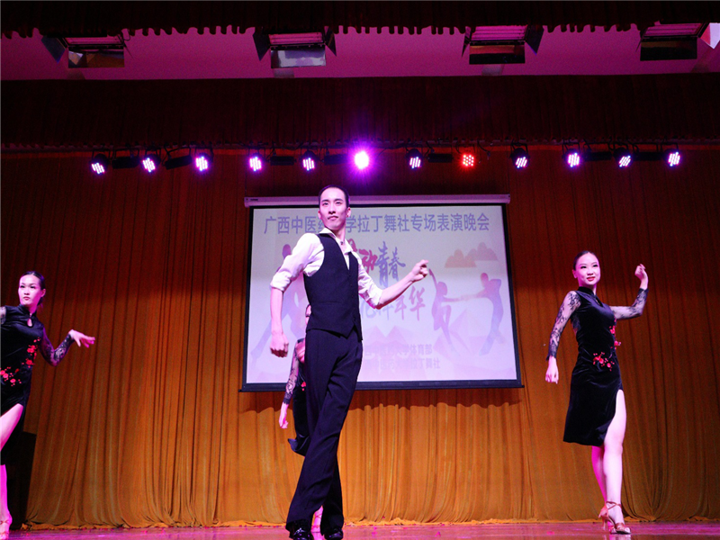 据拉丁舞社团指导老师黄茜介绍,拉丁舞社成立于2016年9月18日,经过一年多的发展,成员由成立初的23人发展到今天的160余人,社团获得了学校2017年十佳社团的新锐成长奖。2016—2018年间受各社团、学院邀请表演及本社团组织活动共计30次,参加了包括我校恢复办学60周年晚会演出、南宁电视台公益快闪活动、第三十二届传统保健运动会开幕式表演等活动;社团还代表学校参加了2017年中国广西凭祥第一届“友谊关”杯国际标准舞邀请赛、2017年和2018年广西区国际标准舞大赛。其中在两届区赛中,总计获优秀组织奖2个,各类一等奖9个、二等奖3个,三等奖8个,第二名1个,第三名3个,第四名3个,第五名5个,第六名4个,为学校争得了荣誉,也较好的展示了我校大学生奋发向上的青春风采。