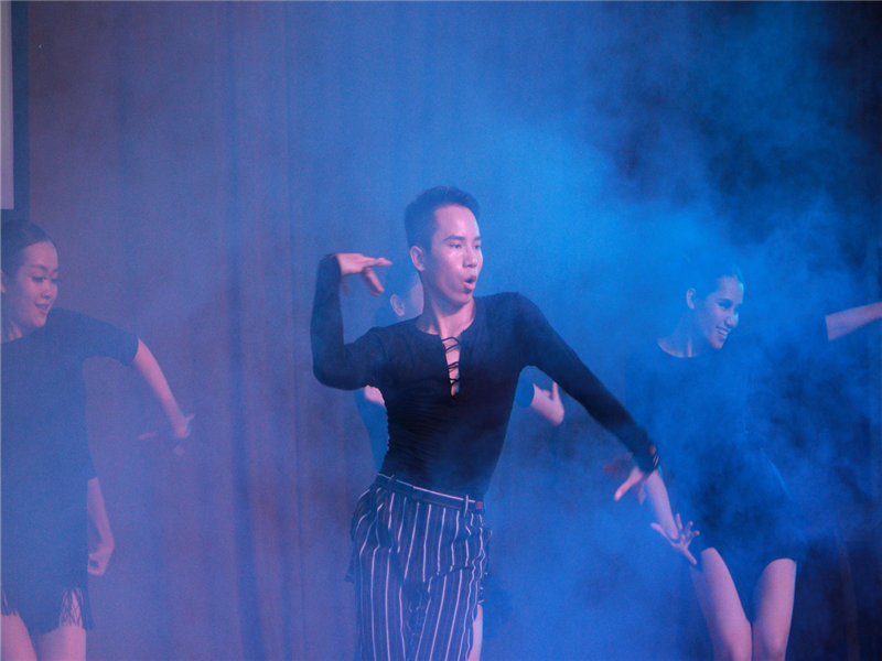 这是一场打破传统形式的晚会,拉丁舞社采用类似快闪的形式,无主持人,无传统报幕,而代之以连续的音乐引导主场本场汇演共17个节目,表演的不仅有拉丁舞社社员,还有拉丁舞选修班的同学。激情火辣的恰恰、优雅唯美的伦巴、动感十足的牛仔以及风格独特的创新拉丁舞,引爆众人眼球,一浪高于一浪的尖叫声欢呼声不绝于耳;尤其是特邀嘉宾周宇飞和黄茜老师结合80年代流行的“草蜢”主打曲献上的压轴表演,更是将晚会推上了高潮,现场观众无一不被舞者专业的表演所折服,独具风韵的舞蹈、青春热辣的舞姿让人流连忘返。