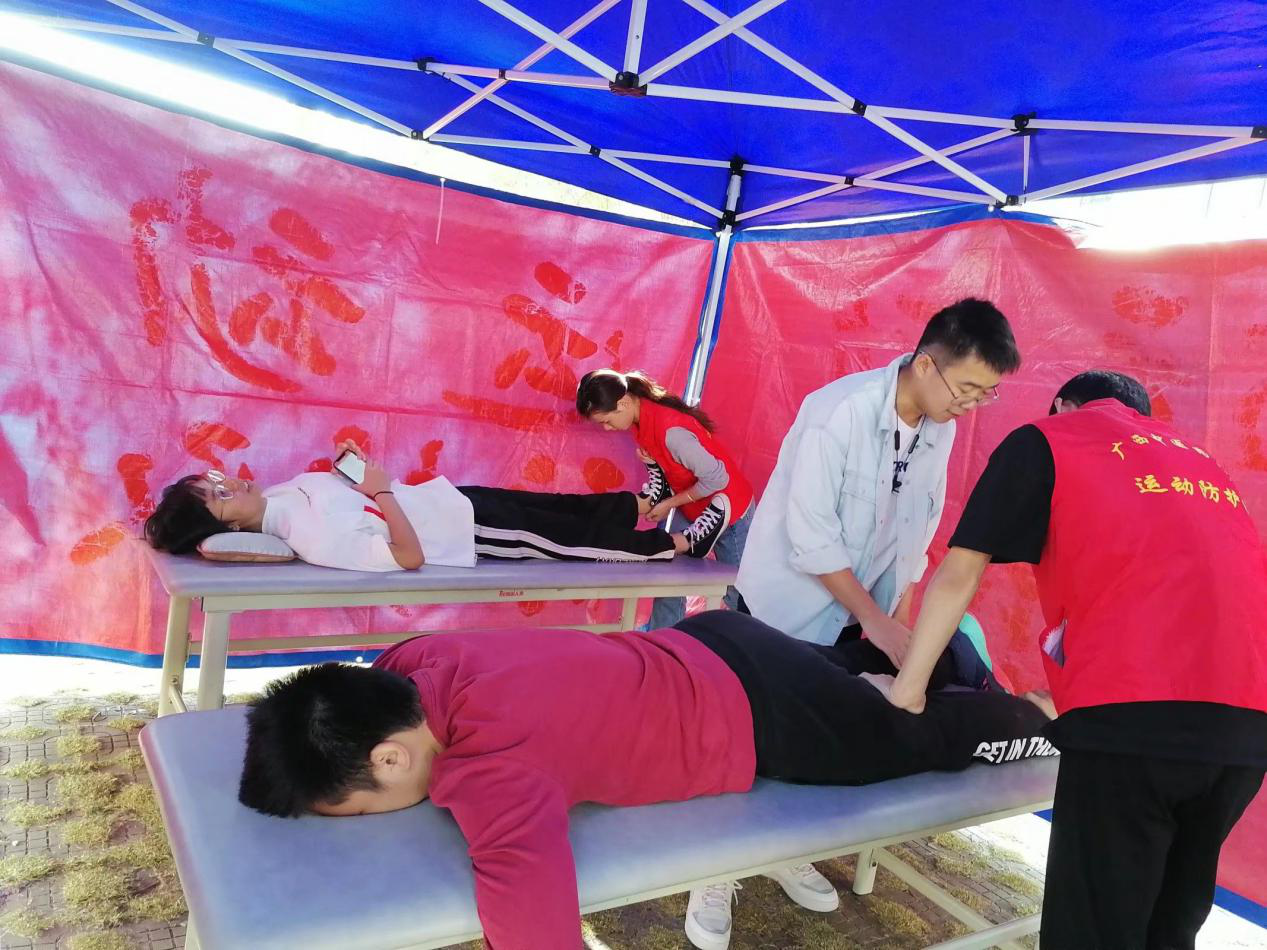 10月24日和25日,星空彩票老版本下载运动防护队受邀参加了药学院和护理学院院运会的防护工作,服务运动员70余人。每项比赛前,运动防护队员们带领运动员做赛前热身-牵伸运动,使运动员能带着更好的状态在赛场上发挥出自己的水平的;赛场边,运动防护队队员们全程待命,时刻关注着赛场上的情况,一旦发现有运动员受伤,会以最快的速度,最短的时间,给予最有效地治疗;在比赛之后,队员们会帮助运动员进行拉伸和手法放松,做赛后的运动康复。