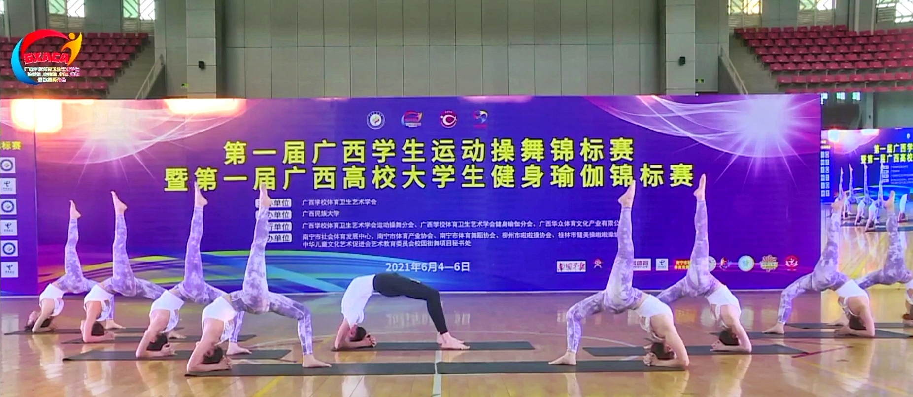6月6日,第一届广西高校大学生健身瑜伽锦标赛在广西民族大学顺利举行。我校瑜伽队共派出17名运动员,分成两个小队参加了集体组的比赛,两个小分队分别以太极瑜伽和医护抢救为舞蹈主题,在比赛中与强劲的对手进行了激烈的角逐。最终以扎实的基本功、和鲜明新颖的主题征服和打动评委,在本科高校中脱颖而出,分别以9.15分和9.09分的全场最高分,包揽了本科集体组第一、第二名。