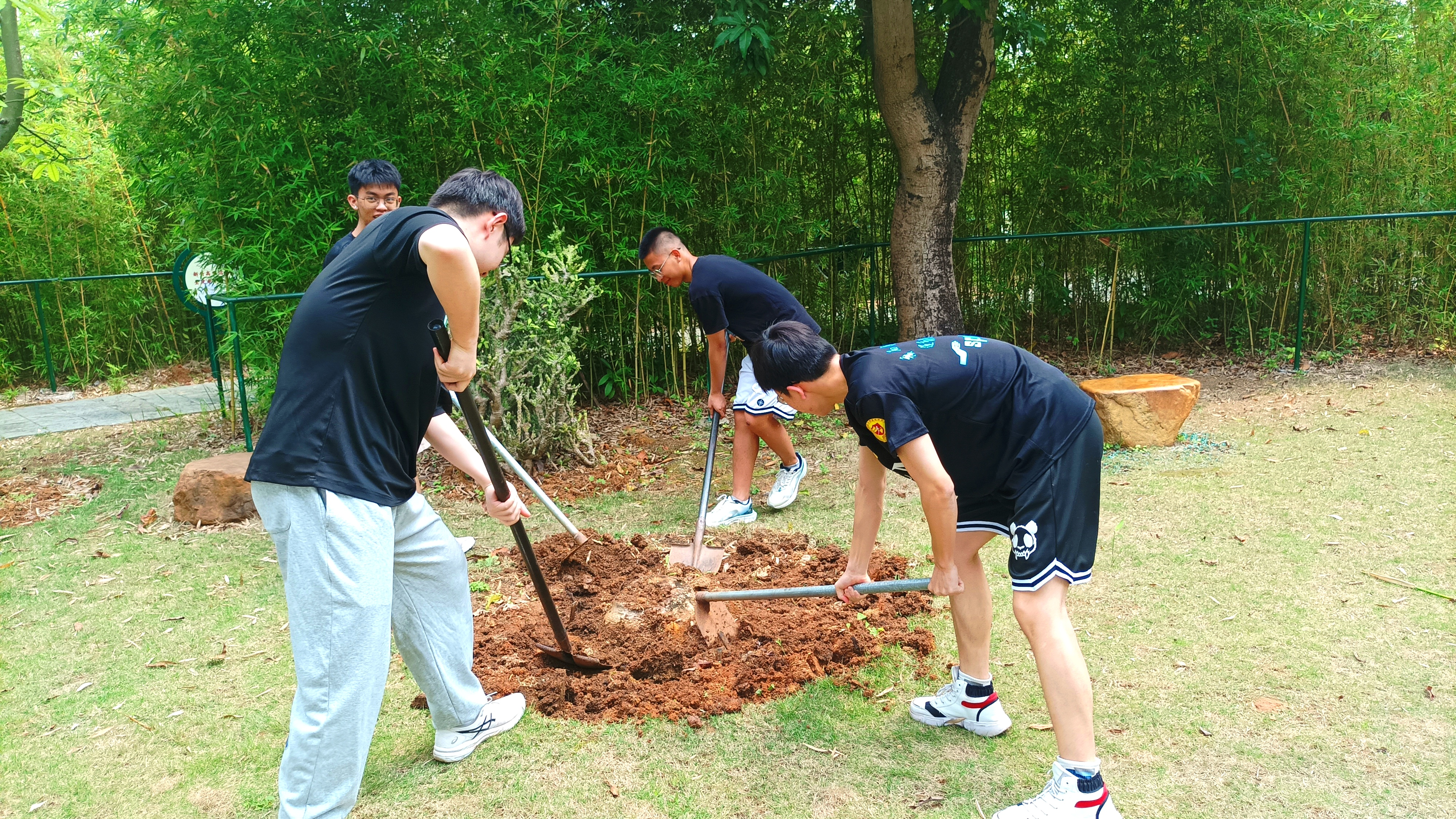 活动过程中,运动防护队的队员们分工合作,有的挥锹铲土,有的扶树填土,有的培土浇水,各个环节衔接有序,配合默契;队员们在欢声笑语中挥洒汗水,用双手种下了白玉兰幼苗。或许多年后当我们回来看望母校,看到已茁壮成长、花香四溢的白玉兰,已成为学弟学妹们夏日朗诵背书的庇荫之地时,能忆及学校对我们的恩情,想起当时青春的我们那张扬放肆的奔跑,为理想振翅高飞的轨迹,奔赴梦想坚持前行的步伐。青春烨烨,理想莹莹,感恩之心也当灼灼。