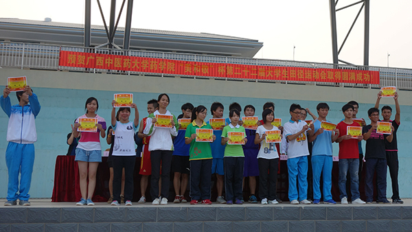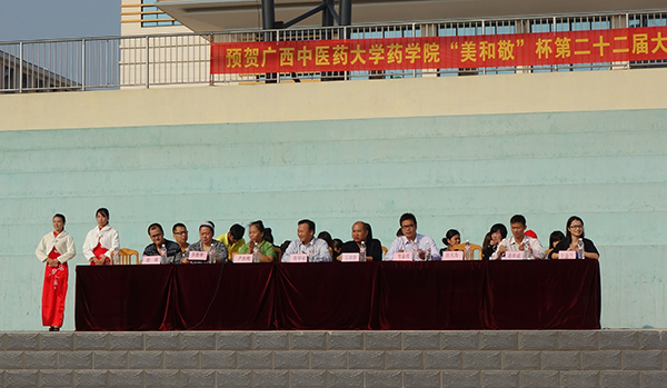 2013年10月26日,星空彩票老版本下载药学院“美和敬杯”第22届大学生田径运动会在仙葫校区田径场举行。出席本次运动会开幕式的嘉宾有桂林美和敬茶叶有限公司总经理徐球,星空彩票老版本下载学工处处长肖华业,体育部副主任石荣群,药学院党委副书记李豫萍,药学院副院长卢汝梅,药学院学生办公室老师以及各部门、二级学院师生代表、药学院一千多名学生出席了运动会开幕式。