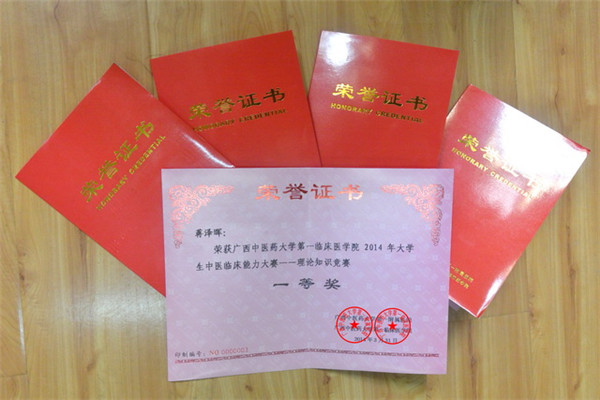 2014年3月23日晚上7:00-21:30,第一临床医学院组织150余名临床医学类专业的学生,通过闭卷答题的形式举办了中医基础理论知识竞赛活动。此次竞赛活动主要通过考核学生的中医基础理论、中药学、方剂学、中医经典等知识,以全面了解学生对中医基础理论知识掌握的程度。经过激烈角逐,2010级中医学蒋泽晖同学荣获竞赛一等奖,王夏青、吕德祺、陈桂珍三位同学荣获竞赛二等奖,陆玉薇、杨显超、邰志洪、朱元元、韦巧、黄敏六位同学荣获竞赛三等奖;此外,还分别评比出了中医基础理论之星、中药学之星、方剂学之星、中医经典之星共42位优秀同学,为即将举办的第一临床医学院中医临床技能竞赛活动选拔出了苗子选手。