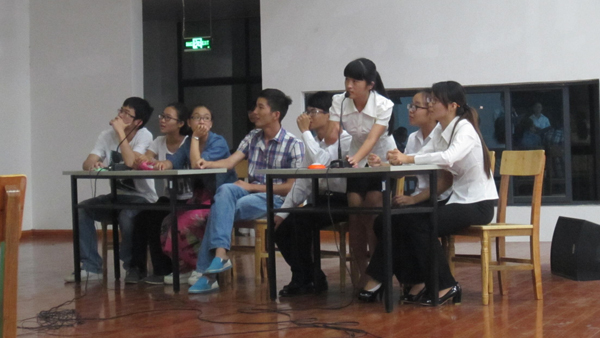 竞赛在全体共唱国际歌后正式开始。跃跃欲试的药学院代表队迎来了竞赛的第一个环节――必答题部分,队员们沉着冷静,认真听题,仔细思考,轻松地拿到60分的好成绩;在抢答环节中,药学院代表们思维敏锐,热情饱满而且抢答迅速,又为药学院把40分收入囊中;转眼便进入了红歌填词抢答环节,药学院代表们已是越战越勇,虽然遗憾因超时而失掉一题,却任为药学院增进了20分,并赢得观众阵阵掌声!