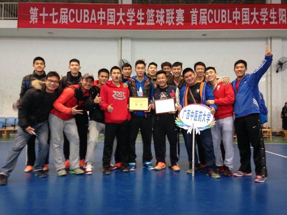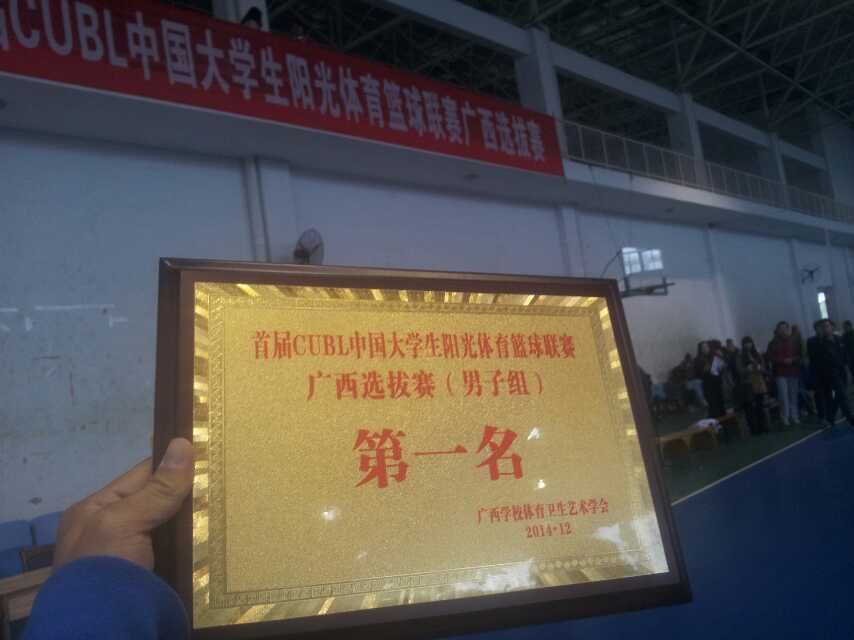 第十七届CUBA中国大学生篮球联赛 首届CUBL中国大学生阳光体育篮球联赛广西选拔赛,于20141225在广西师范大学雁山校区比赛落下帷幕。本次比赛由广西壮族自治区教育厅体卫处主办,来自全区13所大学的篮球球代表队参加CUBL比赛。经过六天九场比赛激烈的角逐,我校男子篮球在领队石荣群副主任、主教练丘大为老师的带领下全队上下齐心协力,斗志昂扬,迎难而上,无畏伤病,拼搏到比赛最后一秒钟,以精神饱满的状态去迎战每一场比赛,最终以全胜不败的战绩摘得了本次比赛的桂冠,获得代表广西高校参加CUBL中国大学生阳光体育篮球联赛全国总决赛的资格。