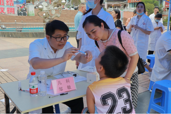 7月17日上午,团队成员参观了素有“壮乡故宫”之称的忻城土司博物馆,感受壮族土司文化魅力。接着参观了忻城县壮族织锦技艺非遗文创店,观赏色彩艳丽,极具民族特色的壮锦。17日下午在忻城县中心文化广场联合忻城团县委、卫健局进行健康义诊和中医药文化宣传活动,受到了现场居民的一致好评。