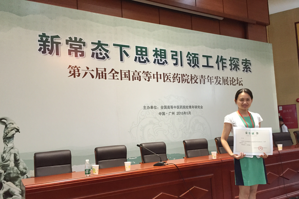 论坛结束后,大会举行了闭幕式,闭幕式由我校董塔健副书记主持。我校龚月嫔、王鑫峰同学的作品《复方依山红颗粒成型工艺的研究》获得大赛二等奖,岑海霞等同学作品《论网络文化对大学生的影响》和李水金等同学的作品《多功能锻炼器》均获得三等奖。我校药学院周蓓老师和研究生学院章晓云同学分别获得2015年全国高等中医药院校优秀青年和优秀青年学生荣誉称号。我校黄鑫、肖华业老师的《新常态下高校贫困生自助帮扶活动的研究与构建》被评为优秀论文。