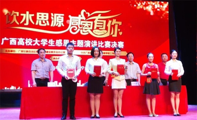 该项比赛以培育和践行社会主义核心价值观为导向,以大学生为重点,通过 “饮水思源 感恩有你”主题演讲活动,引导大学生积极参与爱党爱国爱民爱社会主义教育活动,这对进一步激励和引导青年大学生常怀感恩之心、常立感恩之德、常行感恩之举,为实现广西“两个建成”奋斗目标提供了精神动力。