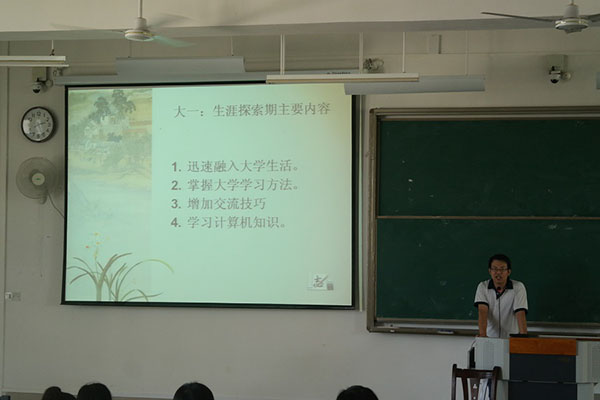 2015年6月29日,仙葫校区教学楼1-201,由药学院学生工作办公室组织,药学院2014级药学班承办了“大学四年生涯规划”为主题的大学生涯规划交流会,由药学院有机教研室郭占京老师担任主讲,共吸引了各专业、各年级大学生约100多人到场听讲。