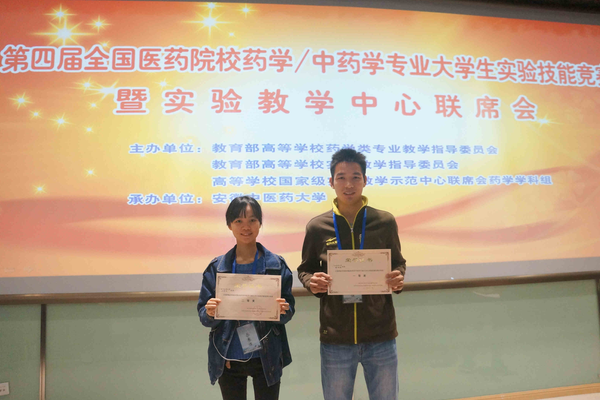 此次竞赛共有来自全国各地62所高校参加。其中包括北京大学、复旦大学、浙江大学、山东大学、中山大学、中国海洋大学、四川大学、兰州大学等“985”高校,还有中国药科大学、沈阳药科大学、首都医科大学、南方医科大学、第二军医大学、第三军医大学等著名医药高校,以及上海、南京、广州、成都、浙江、福建、江西、河南、安徽等10所中医药院校。经过激烈角逐,我校2名选手不畏强手,勇于拼搏,谭德超同学获得一等奖,巫柳岑同学获得二等奖。