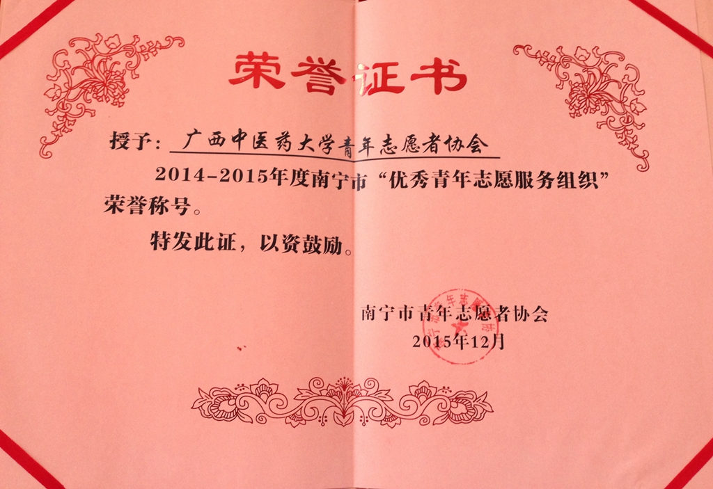 我校青年志愿者协会荣获2015年南宁市“优秀青年志愿服务组织”称号