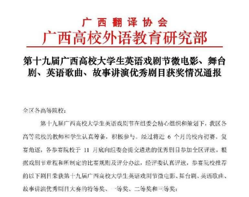 【喜讯】星空彩票老版本下载学子获广西高校大学生英文歌曲大赛多项大奖