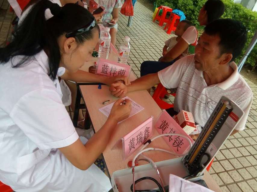 2016年7月18-19日,由医院钟远鸣副院长带队,医院临床各科专家、团委社工部、外联拓展部及学生志愿者共35人组成的第一临床医学院暑期社会实践团队赴横县开展“践行两学一做,医药助力横县”为主题的大学生技术交流和惠民义诊活动。此次暑期社会实践主要由仙葫院区专家团队惠民义诊及与基层医院专科技术交流,第一临床医学院大学生志愿服务团急救知识宣教和针对贫困户和留守儿童开展精准扶贫活动三部分组成。上午,志愿者们为现场群众免费健康咨询、测量血压及推拿按摩服务。实践队还开展了免费就诊送药活动。义诊活动当天,免费就诊群众达到百余名,发放健康宣传资料1000余册,为群众赠送家庭常用药品百余份。下午,实践队队员们为那阳镇中心小学的30名留守儿童进行了健康体检并捐赠了配套学习用品等。