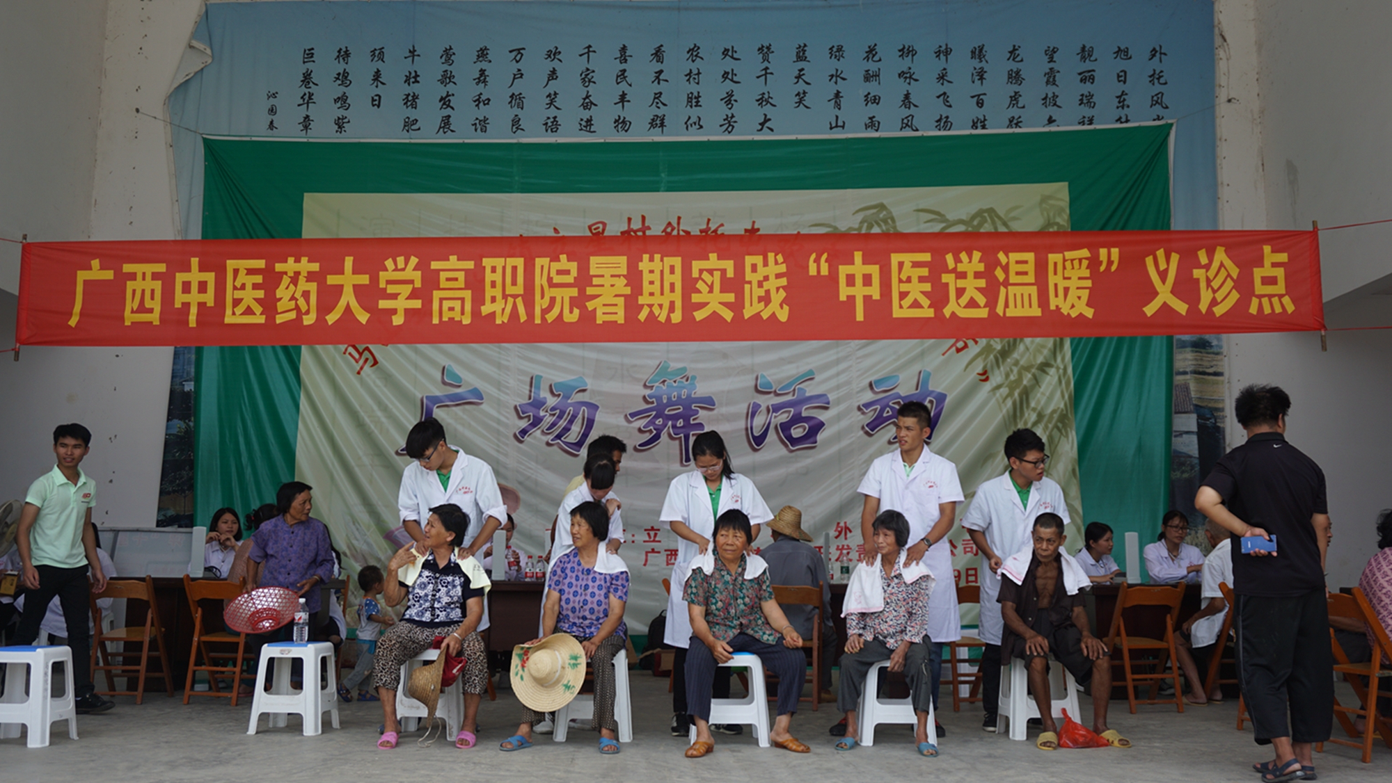2016年7月18日,高职院师生一行71人赴广西马山县开展暑期社会实践活动。社会实践队伍抵达马山后,前往马山县立星村外托屯开展了群众义务服务活动,其服务内容主要包括有免费医疗咨询、穴位艾灸、中医手法按摩、血压测量、清凉茶水赠饮及解暑小药品发放等。当天下午,实践队伍走访立星村贫困家庭,开展服务慰问并送上慰问品。晚上,在实践队员们和村民舞蹈队的努力下,以“红色青春 党的赞礼”为主题的晚会顺利开展,精彩的表演给村民们带来了欢乐。