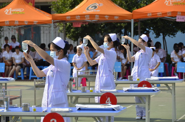 本次大赛设置护理技能展示、临床技能展示和中医技能展示三部分,分层次进行比赛,共有21个班,1120人参加比赛,各参赛集体和个人以良好的精神风貌和精湛的技能技术赢得了观众和评委的认可。经过激烈的角逐,2011级17班和2011级10班分别获得中职层次护理技能组、临床技能与中医技能组的第一名,2011级高护1班获得本专科层次第一名。