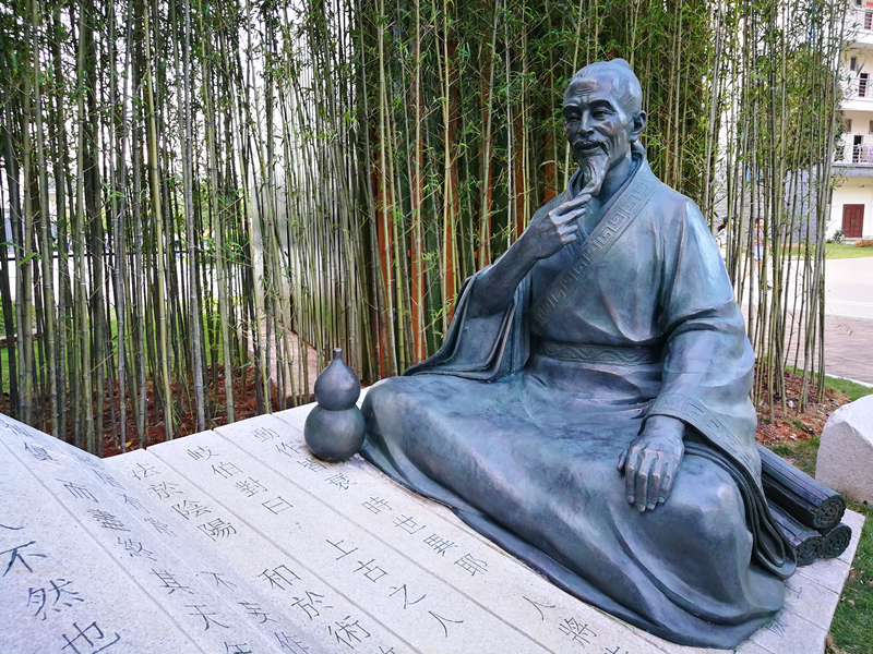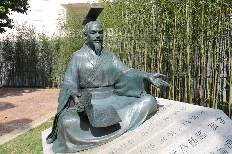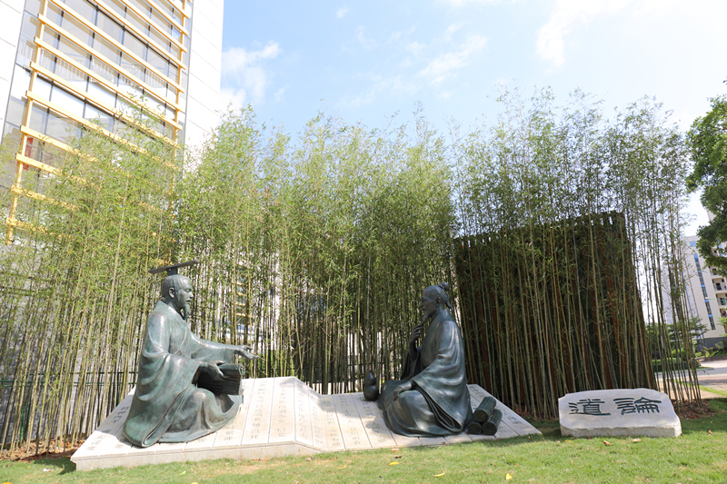青铜组雕“论道”位于仙葫校区格物路与玉兰路十字路口的西北侧广西中医药科学实验中心旁,由我国著名雕塑家、广西美协主席石向东教授及其团队设计制作。