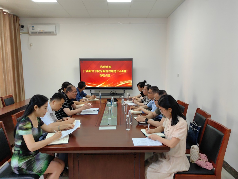 5月17日上午,广西财经学院采购管理服务中心主任黄锡远一行莅临我校,就采购内部控制建设、采购项目高效推进、合同履行管控、项目采购方式相关工作进行深入调研与交流,资产管理处处长钟勇、副处长伍金荣和采购管理科等相关人员参加了座谈。