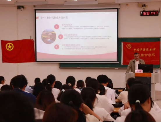 韦维作题为《习近平新时代中国特色社会主义思想概览》的报告,以国际形势与时事热点为切入点,围绕习近平新时代中国特色社会主义思想的形成脉络、历史定位、核心内涵实践要求等内容展开授课,勉励学员们要端正思想、奋勇进取,以创新精神践行青年担当,成长为服务人民、奉献价值的新时代青年;同时寄语学员明确个人发展方向,做好成长规划,以目标引领行动,在实践中实现进步与成长。