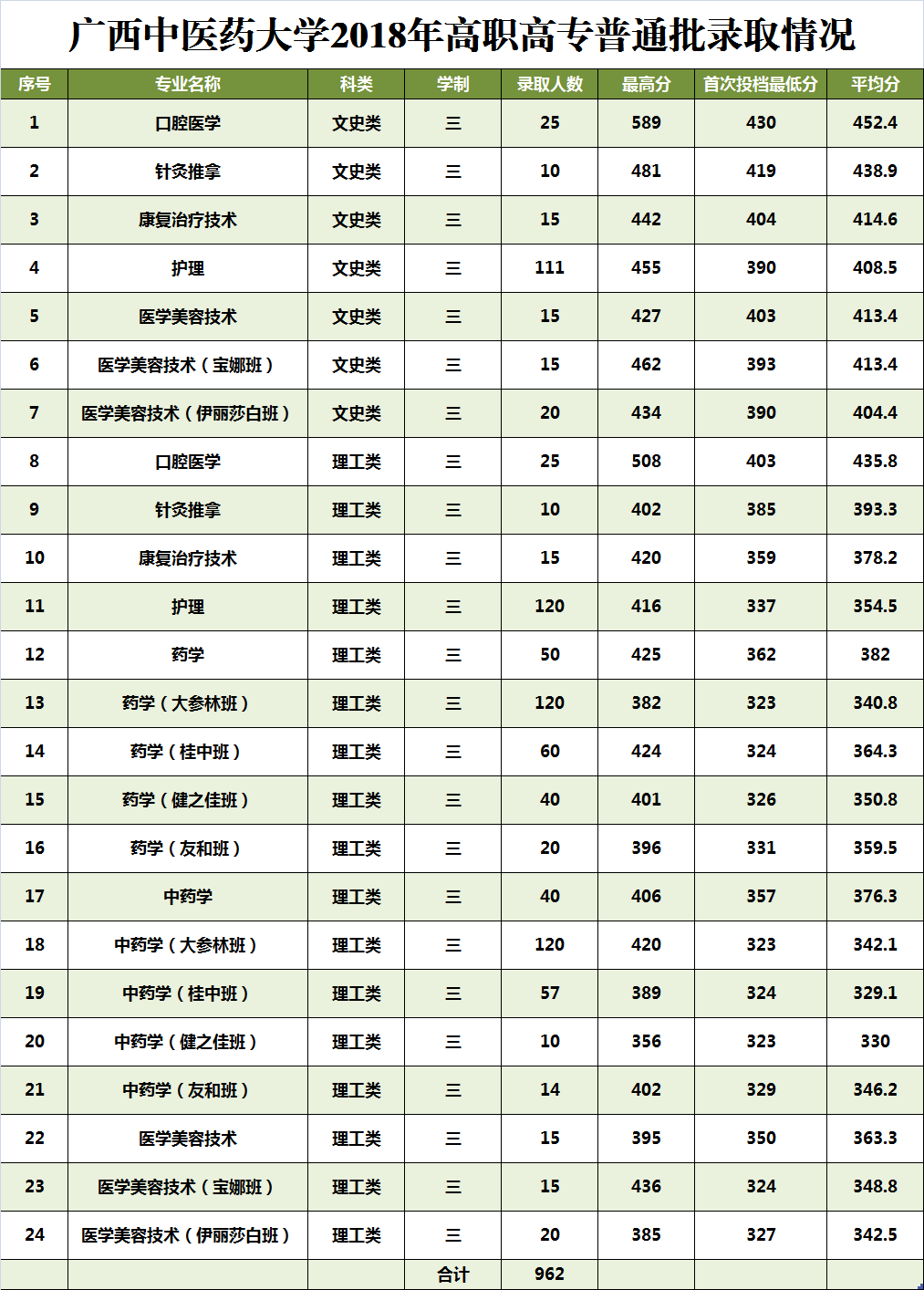 2018年录取进展-高职高专普通批 发布时间:2018-08-13 21:28:14 浏览次数: 次 【字体:小 大】 我校2018年在广西高职高专普通批共录取考生962名,其中文史类211名,理工类751名,顺利完成该批次录取计划,详情如下: 录取结果以广西招生考试院公布为准,请被录取考生保持填报志愿时所留联系电话畅通以查收录取通知书。 分享到: 【打印正文】