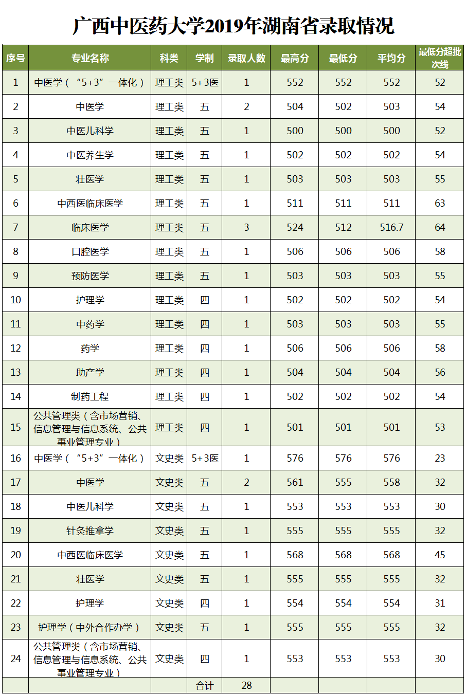 2019年录取进展-湖南省 发布时间:2019-08-12 11:10:55 浏览次数: 次 【字体:小 大】 我校2019年在湖南省共录取本科考生28名,详情如下: 注: 1.湖南省2019年本科一批次最低分数控制线为:理工类500分,文史类553分。我校中医学(“5+3”一体化)专业在湖南一本招生。 2.湖南省2019年本科二批次最低分数控制线为:理工类448分,文史类523分。 录取结果以湖南省教育主管部门公布为准,请被录取考生保持填报志愿时所留联系电话畅通以查收录取通知书。 分享到: 【打印正文】