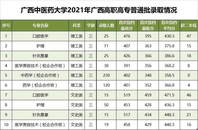 2021年录取进展-广西高职高专普通批 发布时间:2021-08-16 18:55:08 浏览次数: 次 【字体:小 大】 我校2021年在广西高职高专普通批共录取考生600名,详情如下: 注:2021年广西普通高校招生录取本科第二批录取最低控制分数线:理工类348分,文史类413分。2021年广西普通高校招生录取高职高专录取最低控制分数线:理工类180分,文史类180分。 录取结果以广西招生考试院公布为准,请被录取考生保持报名时所留联系电话畅通以查收录取通知书。 分享到: 【打印正文】