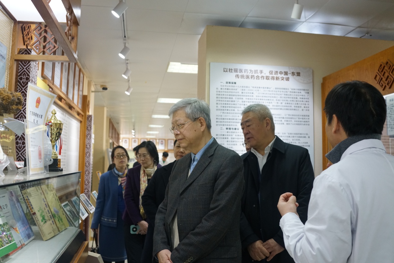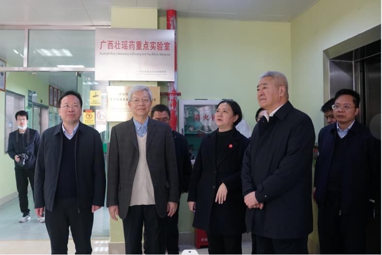 会后,院士一行实地考察了我平台,了解我平台中药壮瑶药科技创新工作,学校党委书记莫锦荣、校长姚春、副校长冷静、总会计师何刚亮陪同考察交流,本平台常务副主任苏健博士、张淼老师、谢凤凤老师、许立拔老师、蒋开雨老师、韦露玲老师、余秀琪助理和刘祖锭助理以及本平台研究生参会。苏健博士汇报了我平台在产学研等方面取得的成绩,希望院士多指导,进一步指导中药材壮瑶药开发、人才培养、产业发展、科学研究、临床实践等各方面研究工作,共同推动中药壮瑶药事业与产业高质量发展。杨玉良院士和董尔丹院士在本平台考察时表示,星空彩票老版本下载壮瑶药研究平台很有特色,很有发展前景,希望进一步结合区域特色,推动壮瑶药高质量发展。