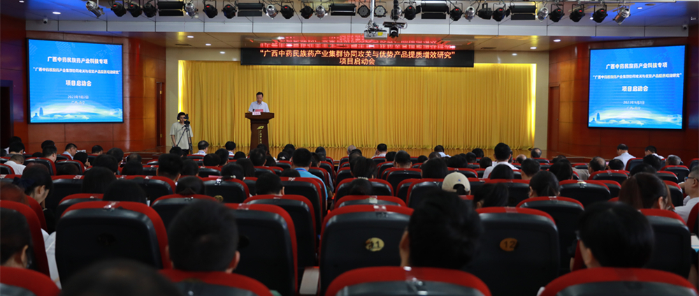 姚春进行了课题介绍和工作部署。姚春指出,自治区党委、政府高度重视中医药工作,在科技厅的指导和大力支持下,项目汇聚了国家级科研平台及院士团队、区内高校及科研院所、医药企业及医疗机构等科研力量,利用广西本地特色药用资源和现代科学技术手段,从“桂十味等广西特色药材产品开发”“医疗机构中药民族药制剂开发”“经典名方 新药产品开发”、“中成药产 品二次开发”“ 中药配方颗粒产品开发”“药食同源系列产品开发”“中药民族药日用大健康产 品开发”等七个方面开展广西中药民族药产业集群协同攻关与优势产品提质增效研究,促进广西中药民族药的资源优势转化为产业优势,进一步提升广西中医药民族医药医疗服务能力,推动广西中药民族药产业高质量发展。