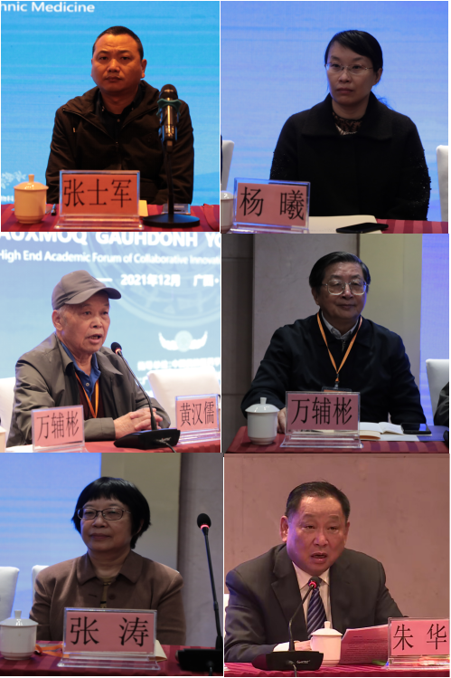 论坛分5个分会场举行。研讨重点集中在五个研究方向:1.中医药壮瑶医药在重大疾病防治中的作用,2.壮瑶药理论基础与民间方药研究,3.壮瑶药品种品质多维评价研究,4.壮瑶药药效与临床应用研究,5.壮瑶药事业和产业高质量发展研究。八十岁高龄的壮瑶医药学术泰斗黄汉儒教授和八十岁高龄的壮瑶医药科技史学术权威万辅彬教授一同出席论坛并作报告,成为本次论坛的亮点。