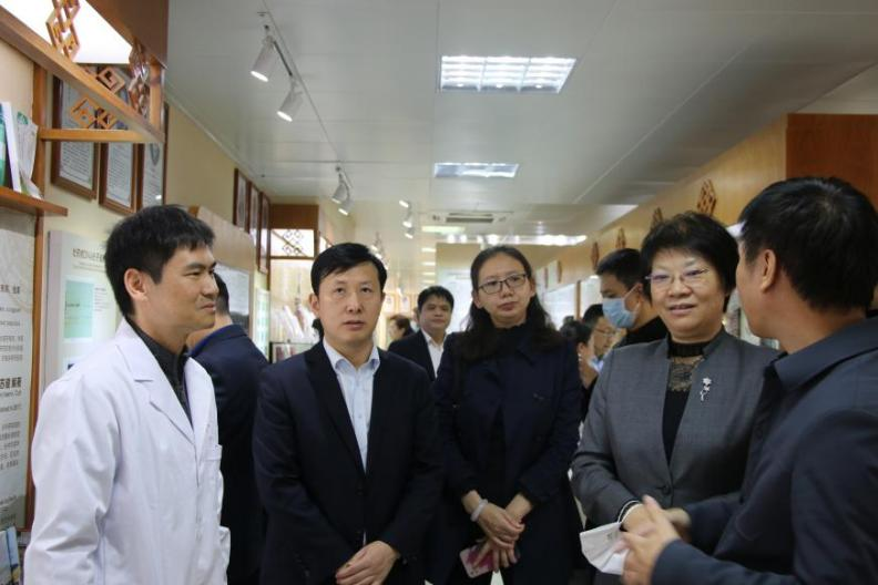2021年12月17日,广药集团副总经理、总工程师刘菊妍一行参观广西壮瑶药重点实验室、壮瑶药协同创新中心、广西民族药资源与应用工程研究中心等平台,平台副主任苏健博士对刘菊妍一行的到来表示热烈的欢迎,并对我平台基本情况简要介绍,他表示广西药材资源非常丰富,拥有极具特色的壮、瑶等少数民族医药资源,本平台主要对民族药质量评价与检测等方面开展研究,建立药材质量标准,为壮瑶药、壮瑶医药今后的发展建立相关基础。