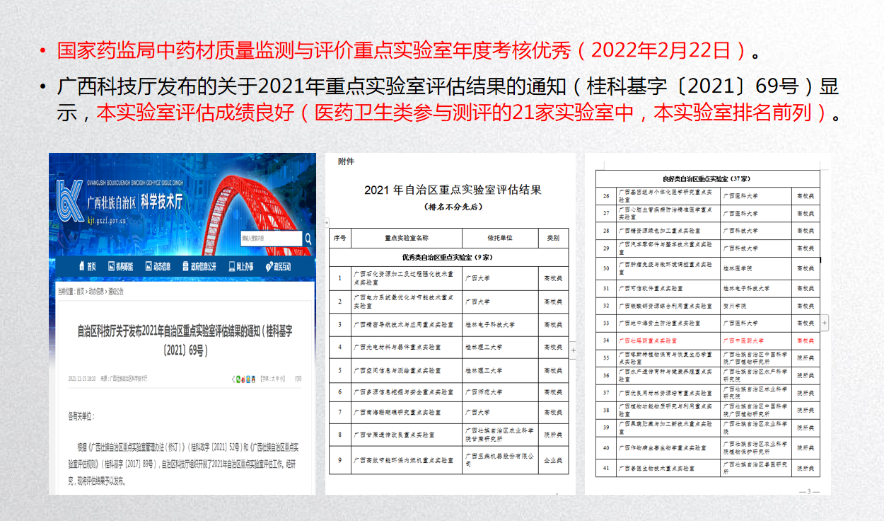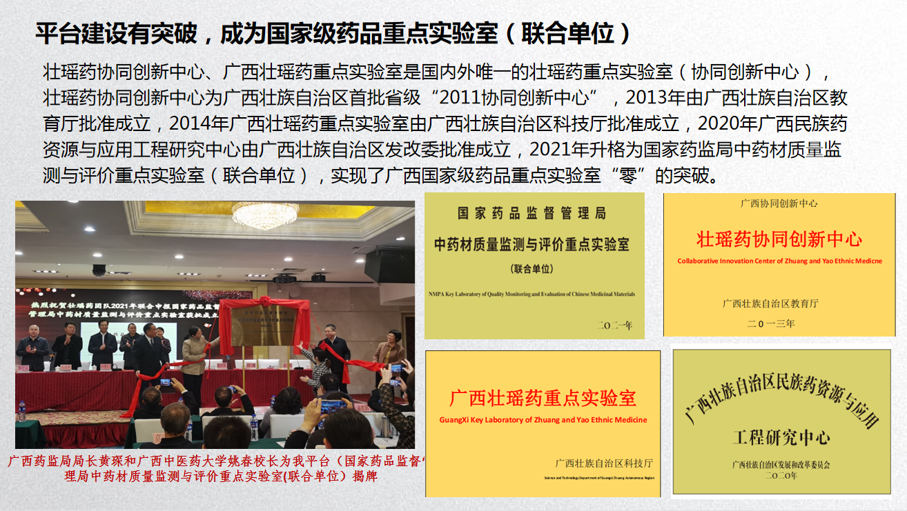 5月18日上午,校党委书记莫锦荣、副校长冷静一行在仙葫校区走访调研实验室与科研平台建设,与实验室管理部门负责人及教师代表进行座谈交流,深入了解实验室建设情况,推进实验室规范化管理。莫锦荣书记一行来到我平台实验室(广西壮瑶药重点实验室、壮瑶药协同创新中心、广西民族药资源与应用工程研究中心等),实地查看了实验室、科研平台,与实验室相关管理人员亲切交谈,详细了解了实验室与科研平台建设、学校实验废弃物处理等方面的情况。座谈会在科学实验中心C115会议室举行。冷静主持会议并介绍了学校实验室与科研平台建设情况。科学实验中心、教学实验实训中心、基础医学院、药学院、公共卫生与管理学院、骨伤学院、海洋药物研究院、针灸推拿学院负责人及自治区重点实验室、广西高校重点实验室教师代表等分别就实验室建设情况作了发言。